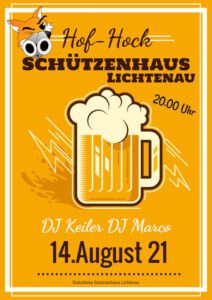 Am Samstag (14.08.) feiern wir im Hof ab 20.00 Uhr. DJ Keiler und DJ Marco